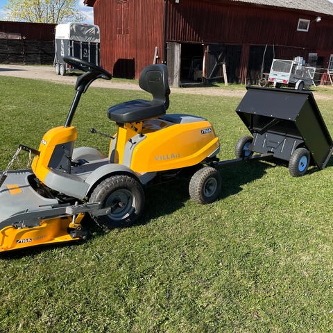 Säljer våran stiga villa master då vi har robot och inte behöver den. Säljer även en vagn med tipp som vi har tagit in ved med.