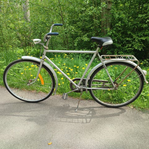 En Monark och en Hermes, väl begagnade. Punktering som behöver lagas