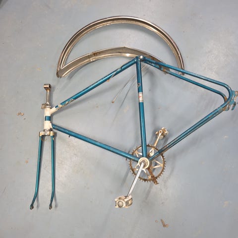 Cykeln säljs som renoveringsobjekt och är i nuläget isärplockad enligt bilder. Perfekt projekt för den som vill återställa en unik vintagecykel eller skapa något riktigt speciellt.