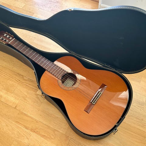 Takamine C132S klassisk akustisk gitarr med nylonsträngar. Byggd i Takamine PRO shop i Japan 1981. Nya Der Jung stämskruvar sitter på originalstämskruvar följer med. Ingår ett fint hardcase också byggt i Japan.