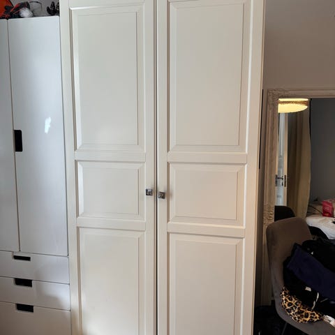Garderob med måtten 60x60x236 med fyra trådbackar och en klädstång.