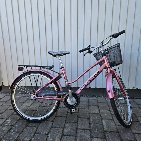Crescent barncykel med 24" hjul och grönt ramfärg. Utrustad med skärmar, pakethållare, stöd och kedjeskydd.