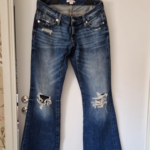 Mkt fina jeans i ljus blå tvätt, litet märke längs ner på kanten.