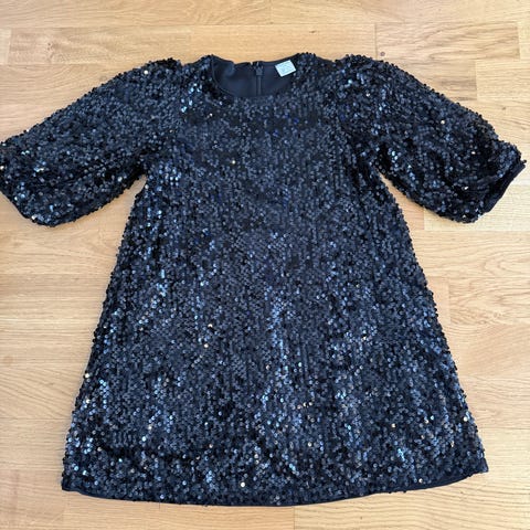 Svart Zara klänning med små blommor på, helt ny i strl 152.
