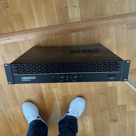 Yamaha P4500 slutsteg med två stora volymrattar på fronten. Stabil metallkonstruktion med strömbrytare och ventilationsgaller fram.