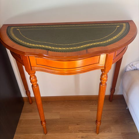 Säljer ett jättefint vitt månbord. Längd: 118 cm. Höjd: 75 cm. Maxbredd: 58 cm.