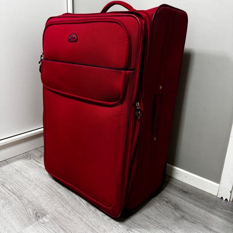 Grön väska även denna i typ canvas material, på hjul, 80:-.