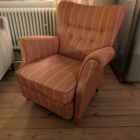 Tidig serie från IKEA. Använda, men fortfarande mkt stabila, sköna att sitta i och snygga att se på. Några mindre fläckar, men går att tvätta.