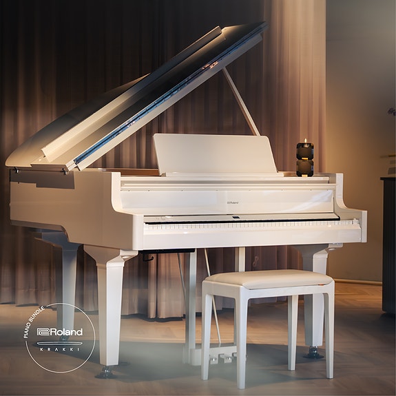 Paketet inkluderar Krakki, en genomarbetad designpianobänk som låter dig ytterligare anpassa uttrycket. Välj bland flera färger och utföranden för att skapa en helhet som passar din inredning. I våra paket ingår alltid även ett par bra hörlurar.