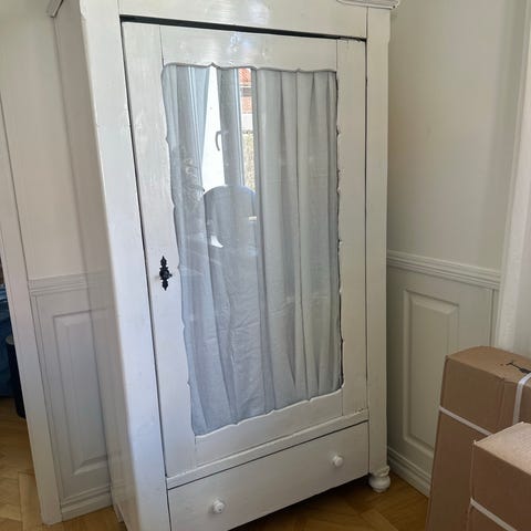 Gedigen hemmabyggd garderob från 1921 med fantastisk kvalitet och charm. Ett riktigt hantverk som håller i generationer. Skåpet är stabilt och har fina detaljer som ger karaktär till rummet.