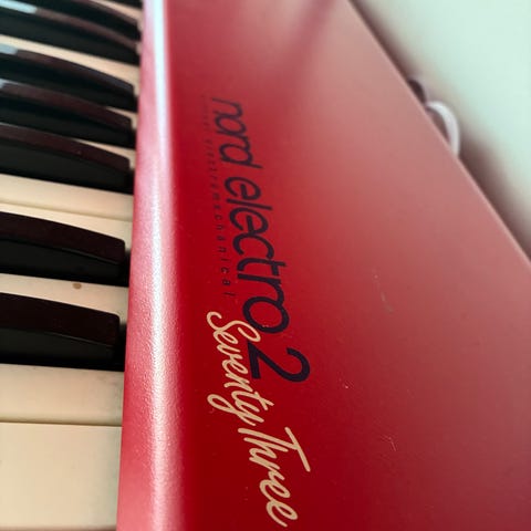 Electro 6 HP med vägda pianotangenter, ett av Nords flaggskepp. Oerhört bra orgel med led drawbars, piano (grand pianos och elpiano) och synthdel med stor ljudbank. Komplett inbyggd effektdel (reverb, rotary, delay, chorus, eq mm). Vikt endast 11,4 kg.