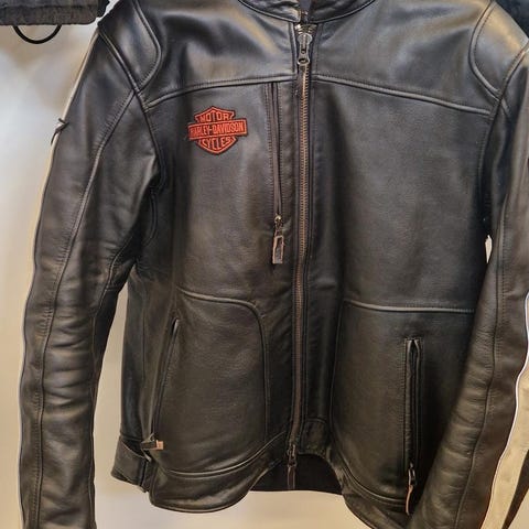 Harley-Davidson prydnad, väska och bälte + Shoei hjälm