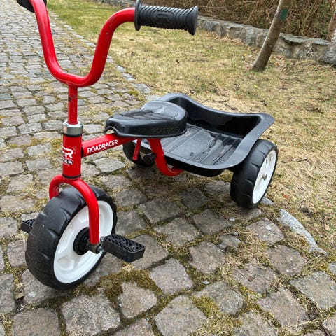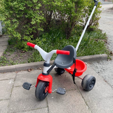 Säljer våra trehjuling från Pinepeak med ett föräldrahandtag så att du som förälder kan styra eller nödbromsa om så önskas. Den har frihjul som säkerställer att pedalerna inte rör på sig när trehjulingen puttas framåt.
