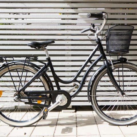Monark damcykel i lila med korg fram och pakethållare bak. Hjulstorlek 24". Utrustad med skärmar, kedjeskydd, inbyggt lås och stöd. Bra däck och i bra skick överlag. Synligt använd. Några bucklor och repor. 3växlar.