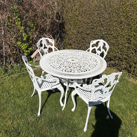 Runt trädgårdsbord med 5 stolar - utemöbler