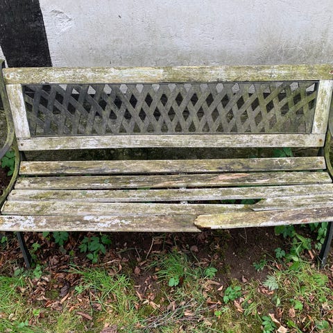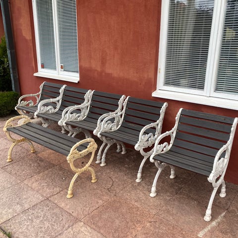 Gjutjärnsbänk äldre modell som renoverats upp, byarums bruk