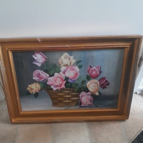 Blomtavla med stor dekorerad ram