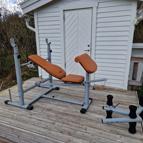 Master Fitness träningsbänk med justerbar lutning, svart färg. Bänken är utformad för styrketräning och kan användas för olika övningar som bänkpress och hantelövningar. Den har en stabil konstruktion med flera inställningsmöjligheter för att anpassa träningen. Exkl. Stång och excl. Vikter. Så bara det som finns på bilden. Den är för tung att skicka, så bara hämtas. endast avhämtning!