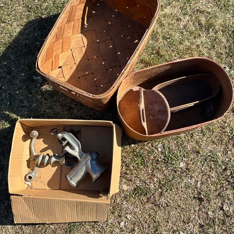 Stort blandat parti äldre handverktyg för träarbete, bland annat hyvel, sågar och tvingar. Flera olika trä- och metallverktyg i olika storlekar, säljes tillsammans som ett parti eller styckevis. Högstbjudande