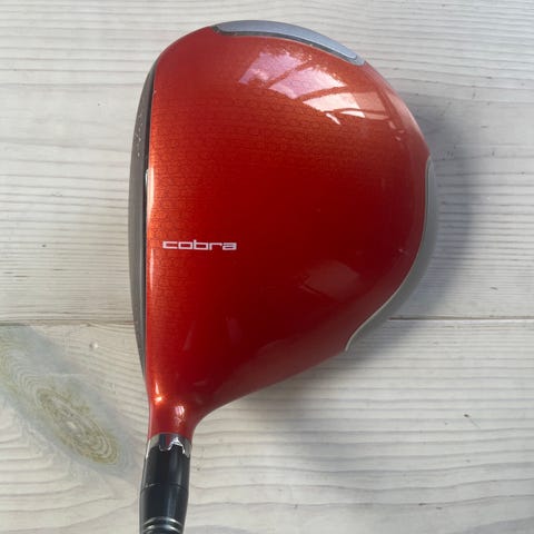 Cobra Bio Cell+ driver med blå/vitt klubbhuvud och Tour AD DI-7 orange/vitt skaft. Justerbar hosel och tydliga träfflinjer på träffytan.