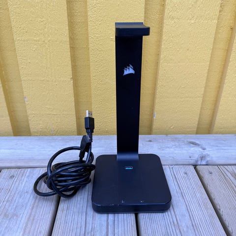 Svart hörlursställ från Corsair i metall. rGB samt 2st usb-a portar.