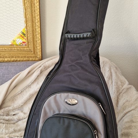 Svart GEWA gigbag för gitarr med flera ytterfack med dragkedja. Har bärhandtag och axelremmar så den är lätt att ta med sig.