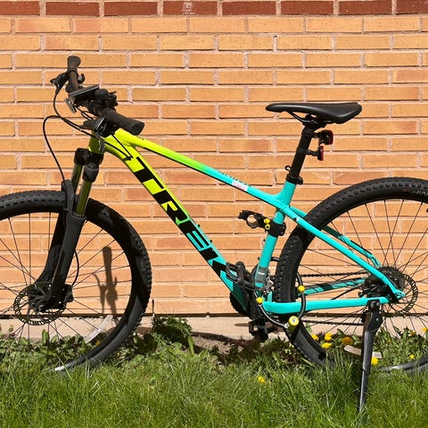 Sitter dropperpost på samt aluminium trampor. Flaskhållare med luftpump för däck samt luftgaffel ingår.