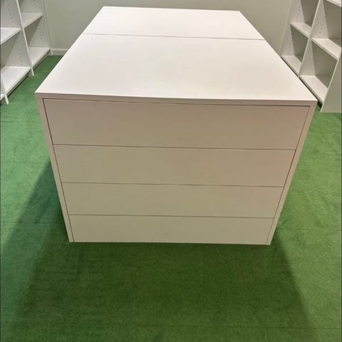 Ikea TYSSEDAL Byrå med 4 lådor, 87 x 76 cm, vit. Fint skick med enstaka små kantstötningar samt en liten spricka på toppen, se bild.