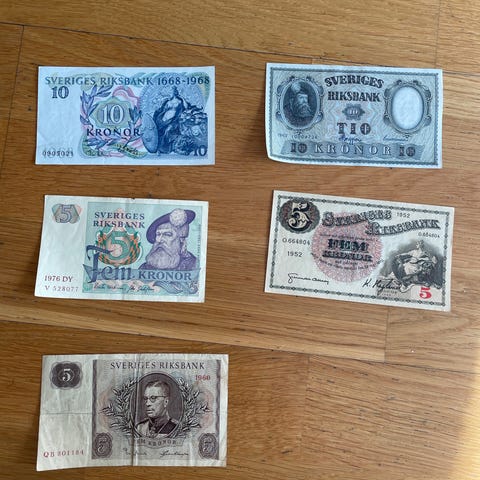 Två äldre 5 pounds sedlar från Bank of England säljes tillsammans. Bra för dig som samlar på utländska eller äldre sedlar.