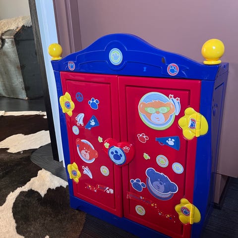 Huset, med flera lekytor, har tre våningar med en inbyggd trappa, ett vardagsrum och badrum, ett kök och matrum och ett sovrum på vinden.