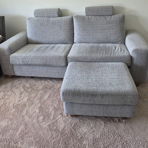 Skön, fast stor tvåsitsig soffa med separat pall.