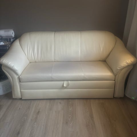 Soffa i fint skick, konstskinn. Ca 2 m bred. Köpt Ekeby ca 10 år sen. Från rök-djurfritt hem. Hämtas Adolfsberg/ Ragnvalla