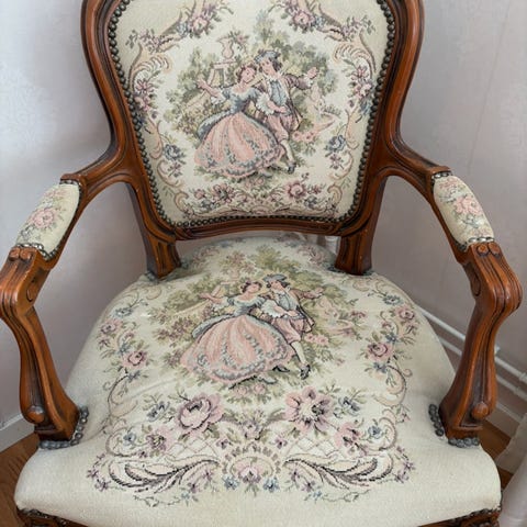 Säljer två fåtöljer i nyklassisk/fransk stil på grund av platsbrist.
