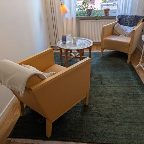 Den ena fåtöljen har en fläck på sitsen som jag inte fått bort vid enklare rengöring.