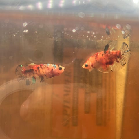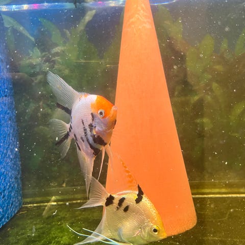 De är ett lekpar och har haft yngel tillsammans(bild 5), hane är bra på att ta hand om yngel och hona är nu fullt med ägg så dem är redo att lekar igen.