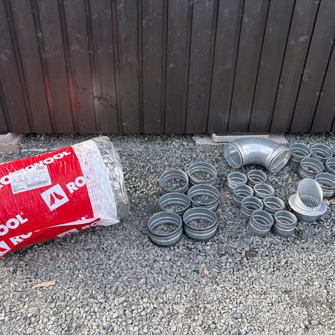 Blandat paket med ventilationsrör, böjar och skarvar i galvaniserad plåt. Flera olika längder och dimensioner, både raka rör, böjar, nipplar muffar och svep. 160, 125 och 100mm. Det mesta har aldrig varit installerat och är köpt nytt för ca 3 år sedan. Det är i fint skick och ligger i säckar.