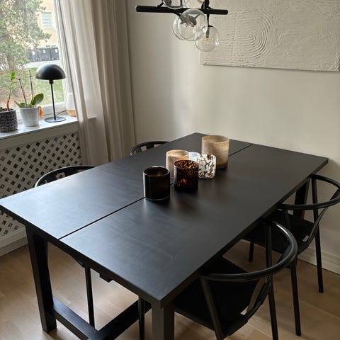 Nordviken stort matbord med 2 utdragsskivor. Mindre skada på ena kanten.