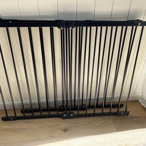 Två Vita säkerhetsgrindar med extensions för extra bredd från Hauck i metall.