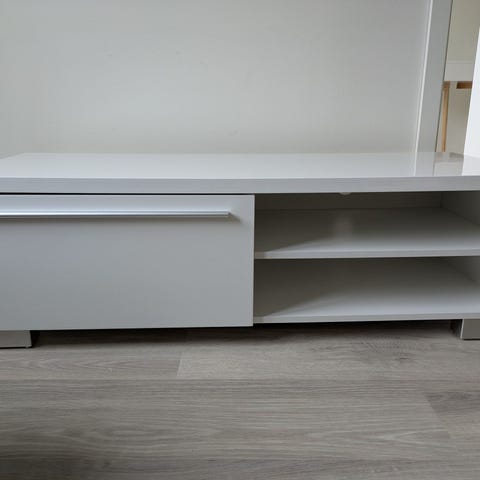 TV-bänken är i fint skick överlag, men har ett litet hack/skav, se bild.