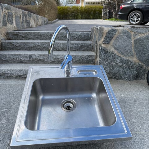 Rostfri dubbel diskho med två separata hoar och stora avrinningshål.