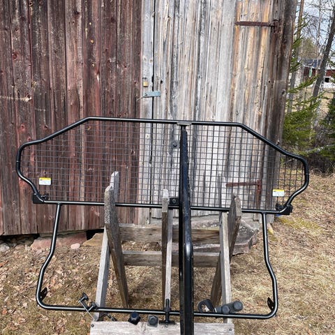 Svart last/hundgaller till bil Toyota RAV4 2017 med två sektioner i metallnät. Fästen och stag följer med för montering bakom baksätet.