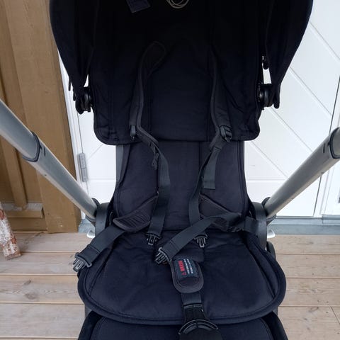 - Bugaboo sittdel till barnvagn med justerbar blå sufflett. Sele med flera remmar och spännen. 400 kr