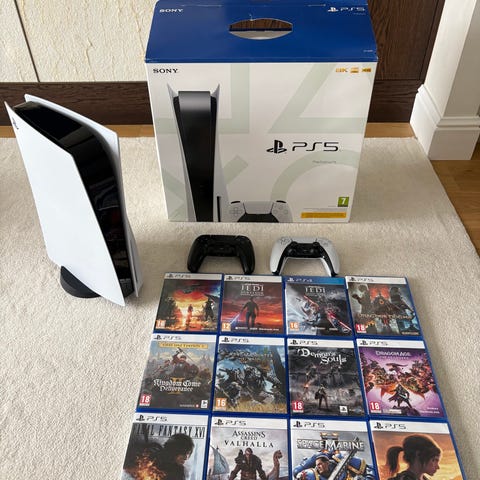 PS5 disc edition med 2 kontroller och 5 spel