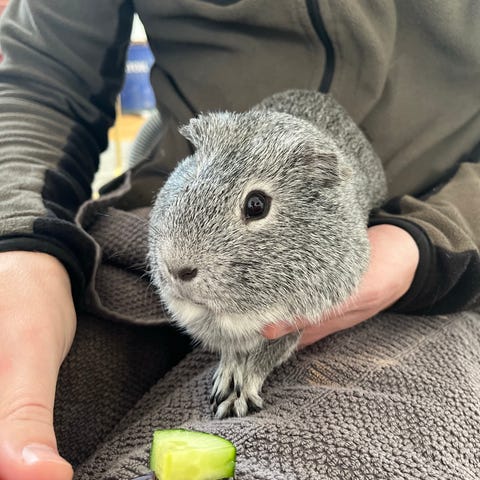 Marsvinsungar, två honor av rasen abessinier. Renrasiga med virvlar. Färgen är brindle, en ljus och en mörk. Uppfödda av godkänd uppfödare i Svenska Marsvinsföreningen. De är registrerade med stamtavlor. Flyttklara tidigast 11 maj då de är fem veckor men också beroende på utveckling och vikt.