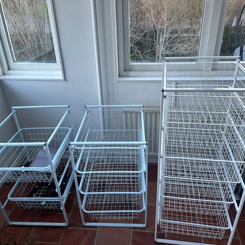 Säljer 2st trådbackar, 250kr för båda två! Snabb hämtning prioriteras. En av backarna har en lös skena, se sista bilden.