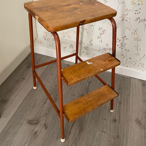 Säljer en klassisk skolbänk i trä med stabilt underrede i stål, troligen från 1950–60-talet. En tidstypisk möbel med fin retrokaraktär som passar lika bra i hemmet som i butik, studio eller som inredningsdetalj.