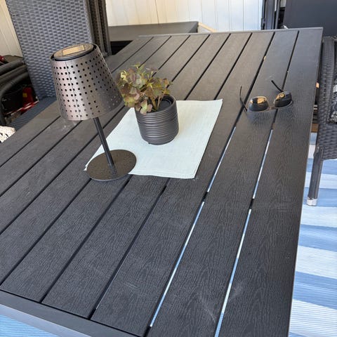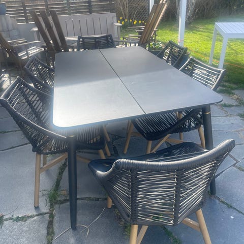 Matgrupp utebord med 6 stolar grå