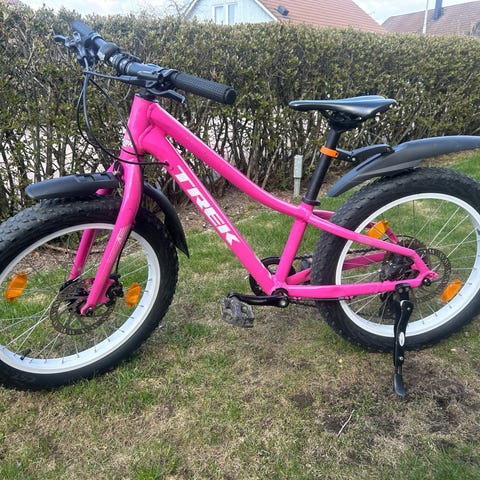 En trial för mindre barn gissningsvis mellan 125- 150 cm. Det är 20 tums hjul. Nya däck och handtag, allt är helt och fungerar. Kan skickas men jag vet inte vad det skulle kosta.