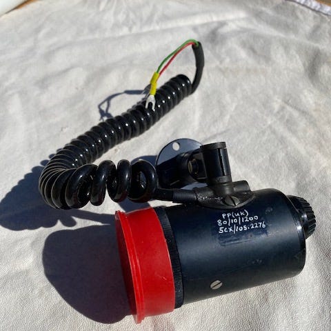 Elektrisk kanalfläkt i svart plast med anslutningskablar. Har propeller inuti och fästen på sidan för montering.