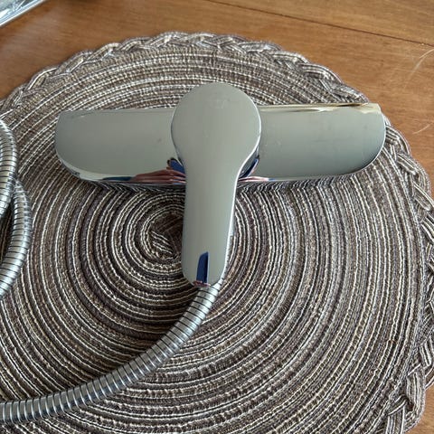 Säljer iväg en ny komplett duschblandare med pip om man har badkar också. Följer även med en kromad duschslang och munstycke gratis.